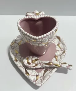 SET 3 PIEZAS FORMA CORAZON FONDO ROSA DESTELLO ORO DECORADO BLANCO