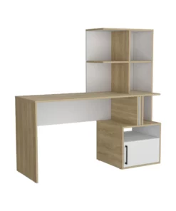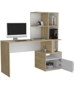 Escritorio Vanez Fresno y Blanco Multiples Entrepaños y Superficies Para Ubicar Objetos