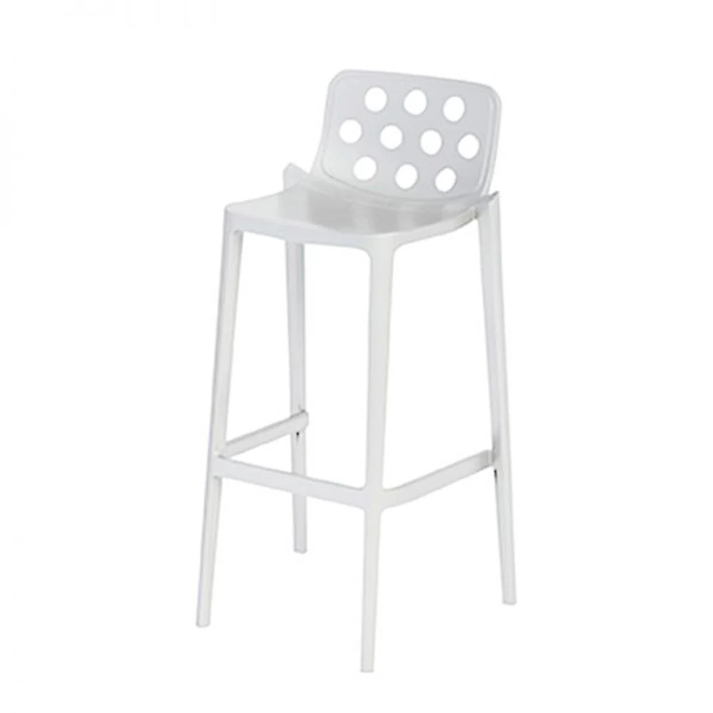 - Banco alto de 4 patas con estructura de acero recubierto en tecnopolímero, con descansa pies.