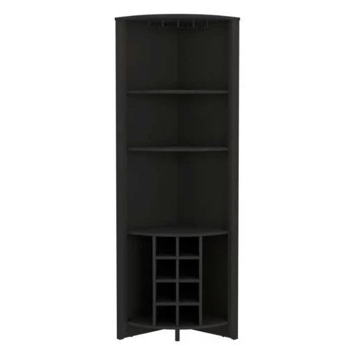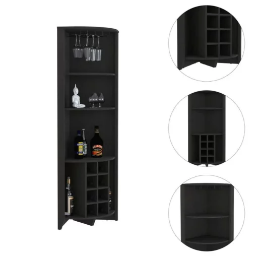 Bar esquinero incluye colgador de copas, espacios para organizar licores, espacios para objetos decorativos