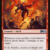 Whenever Blim, Comedic Genius deals combat damage to a player, that player gains control of target permanent you control. Then each player loses life and discards cards equal to the number of permanents they control but don’t own.