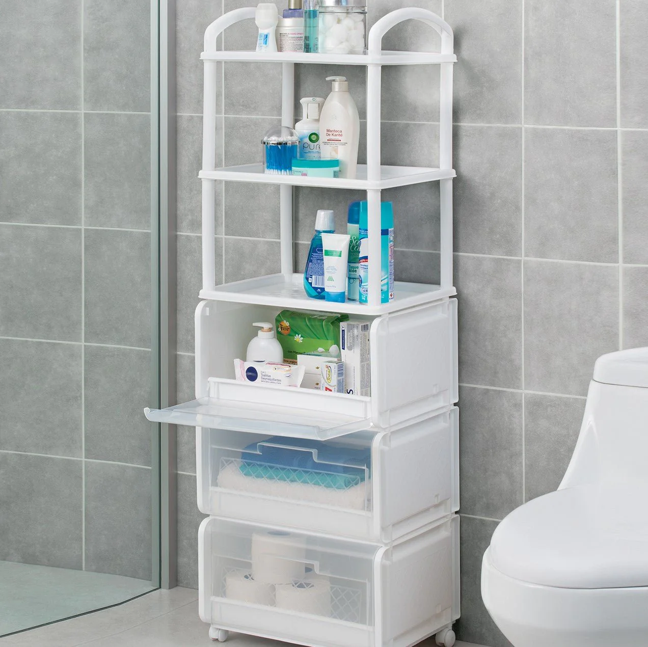 Mantén tu baño en orden en este práctico mueble ideal para los artículos personales de toda la familia. Usa sus cajones para almacenar toallas, papel higiénico o productos de cuidado personal. Súper fácil de mover de lugar gracias a sus ruedas.