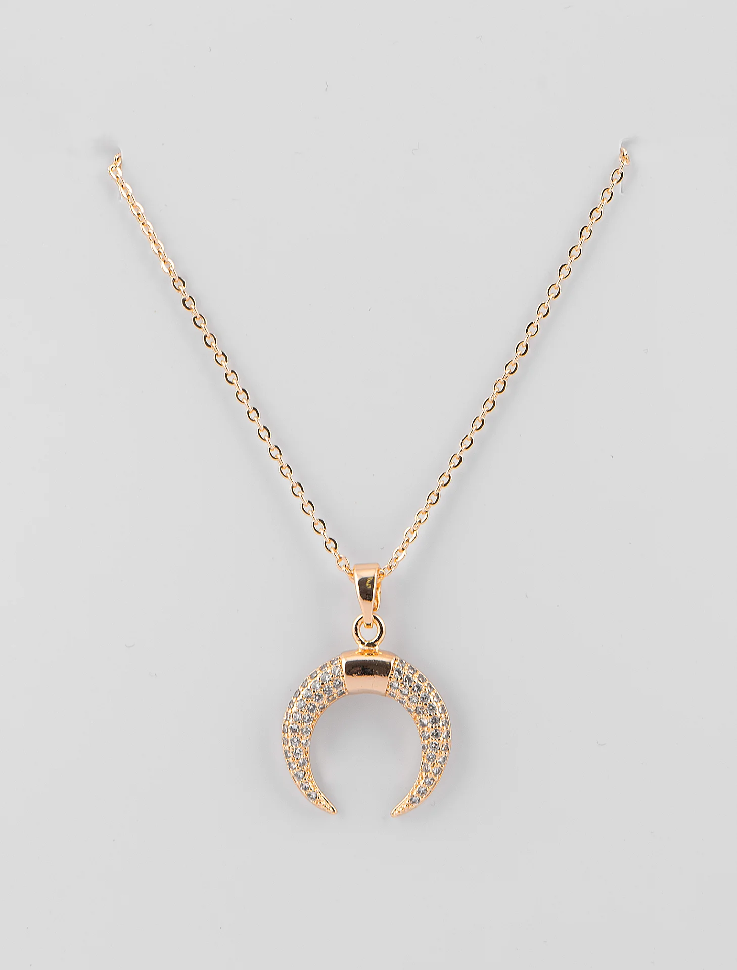 Collar chapa de oro con dije de luna invertida.