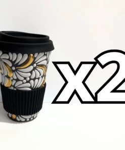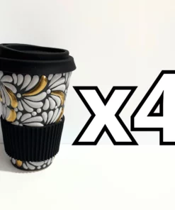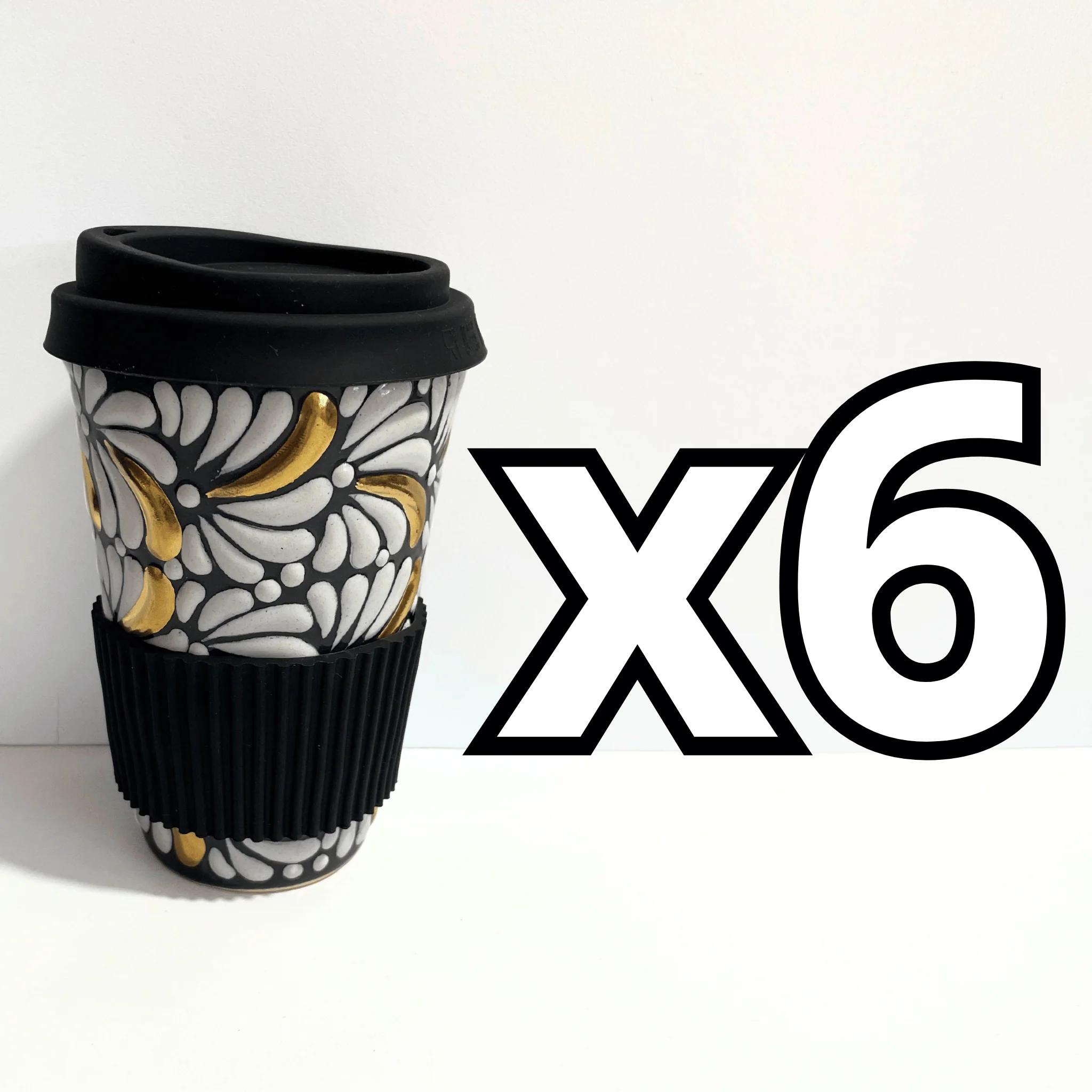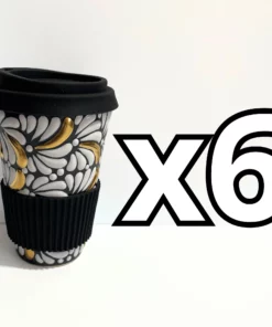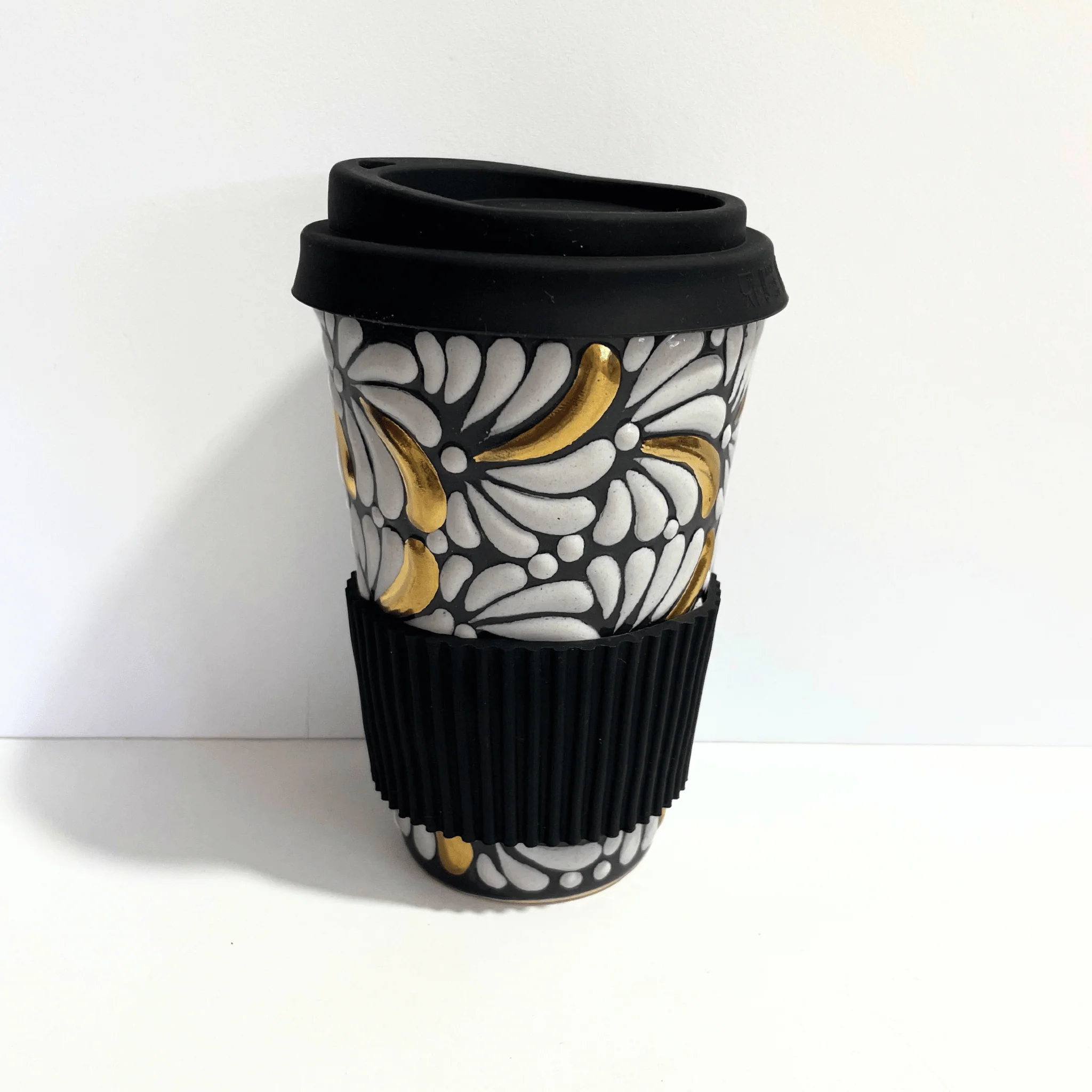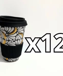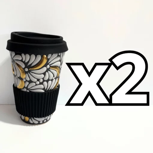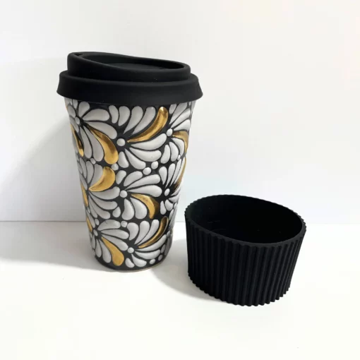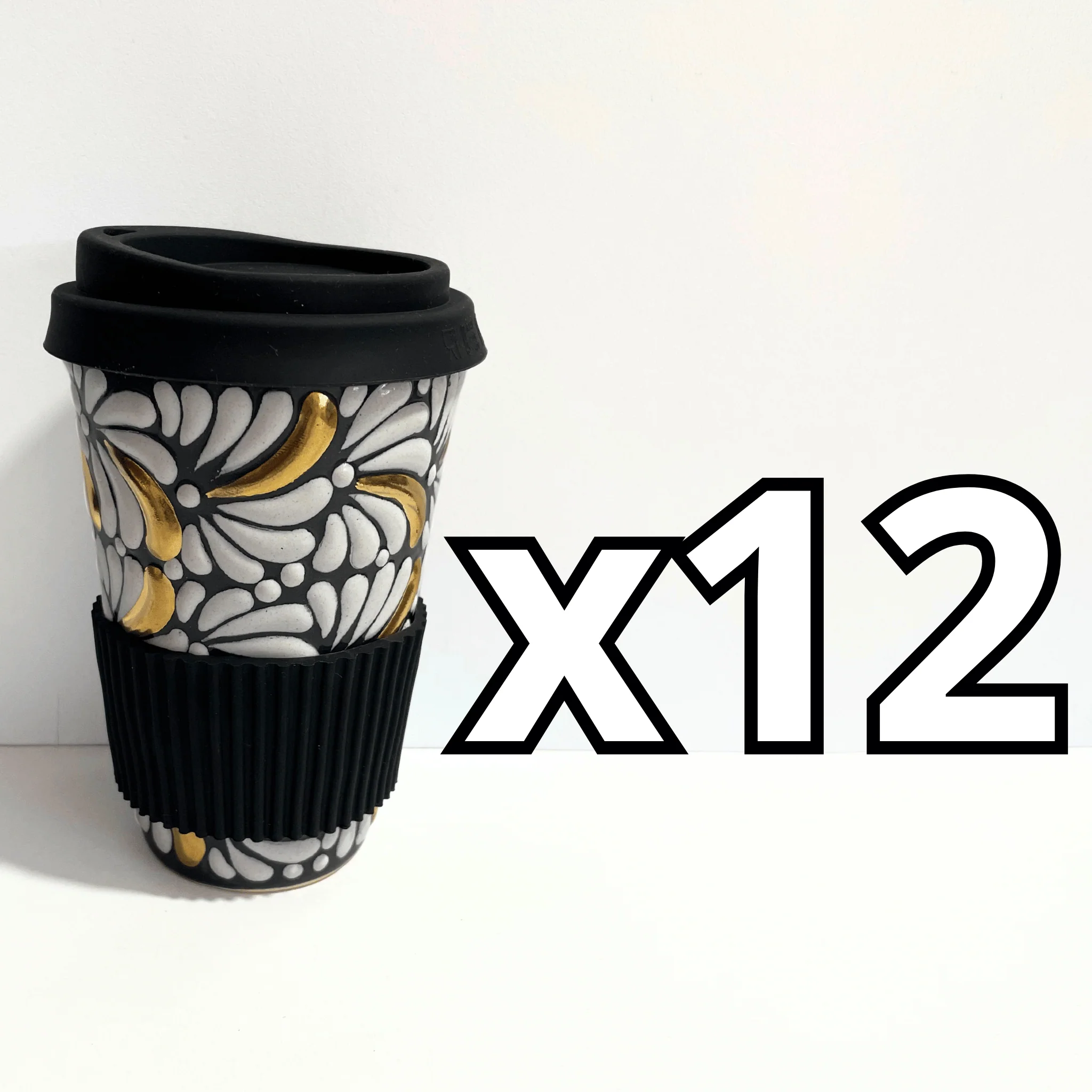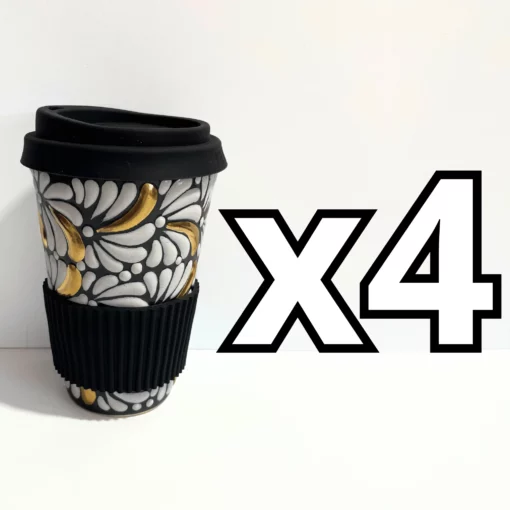 DESTELLOS DE ORO TERMO 15 CM SIN ASA FONDO NEGRO MIK BLANCO