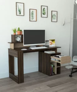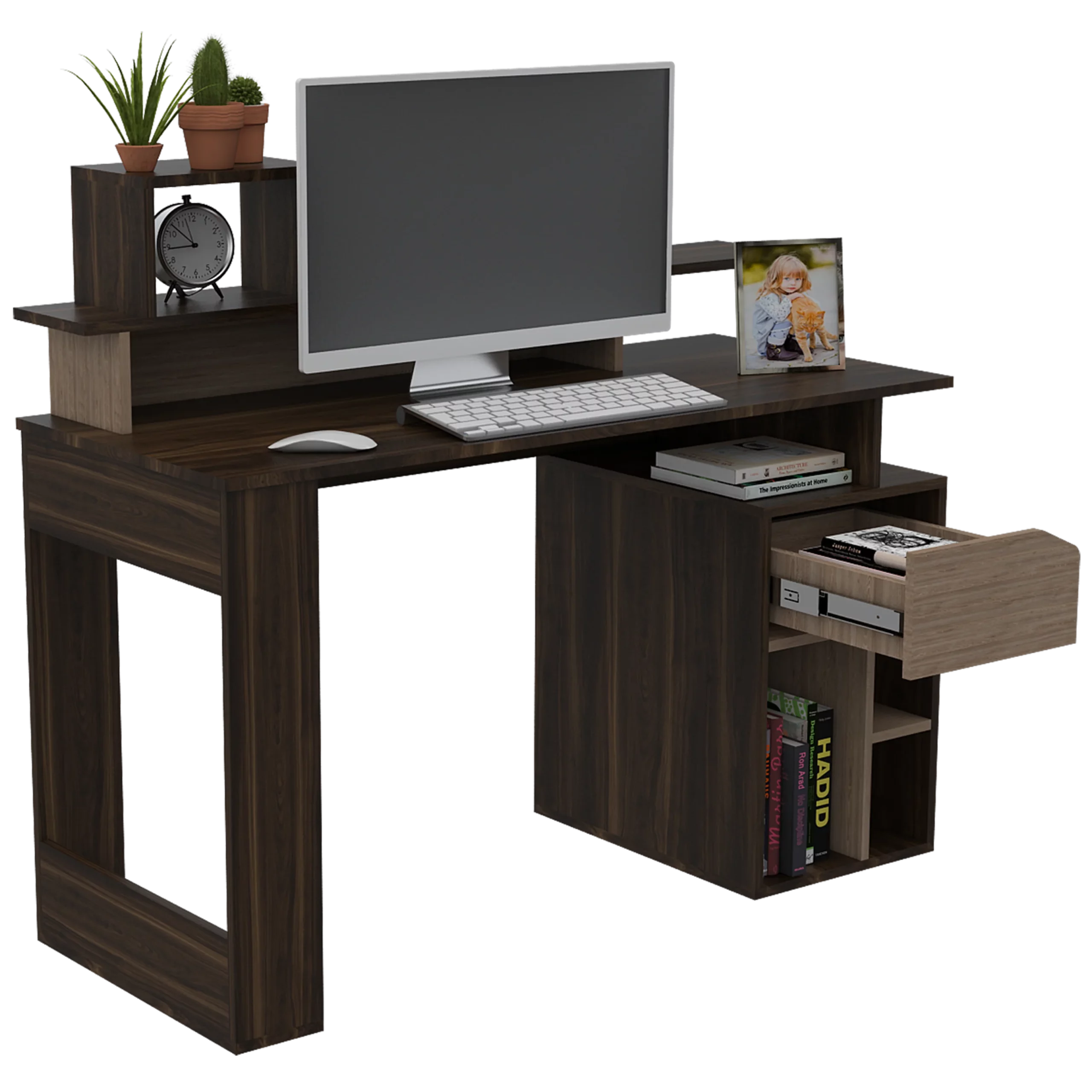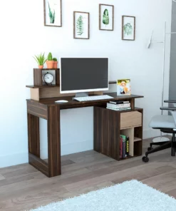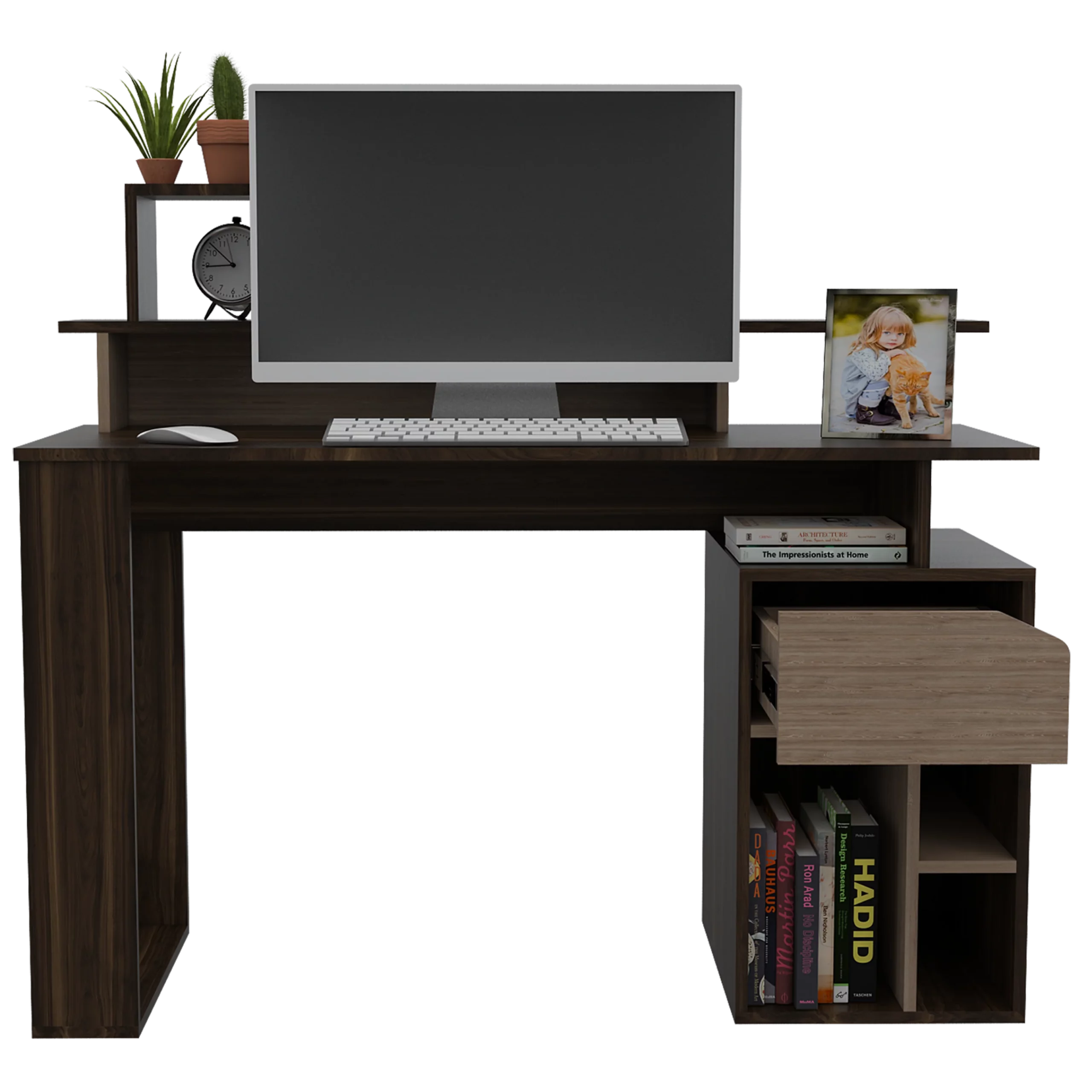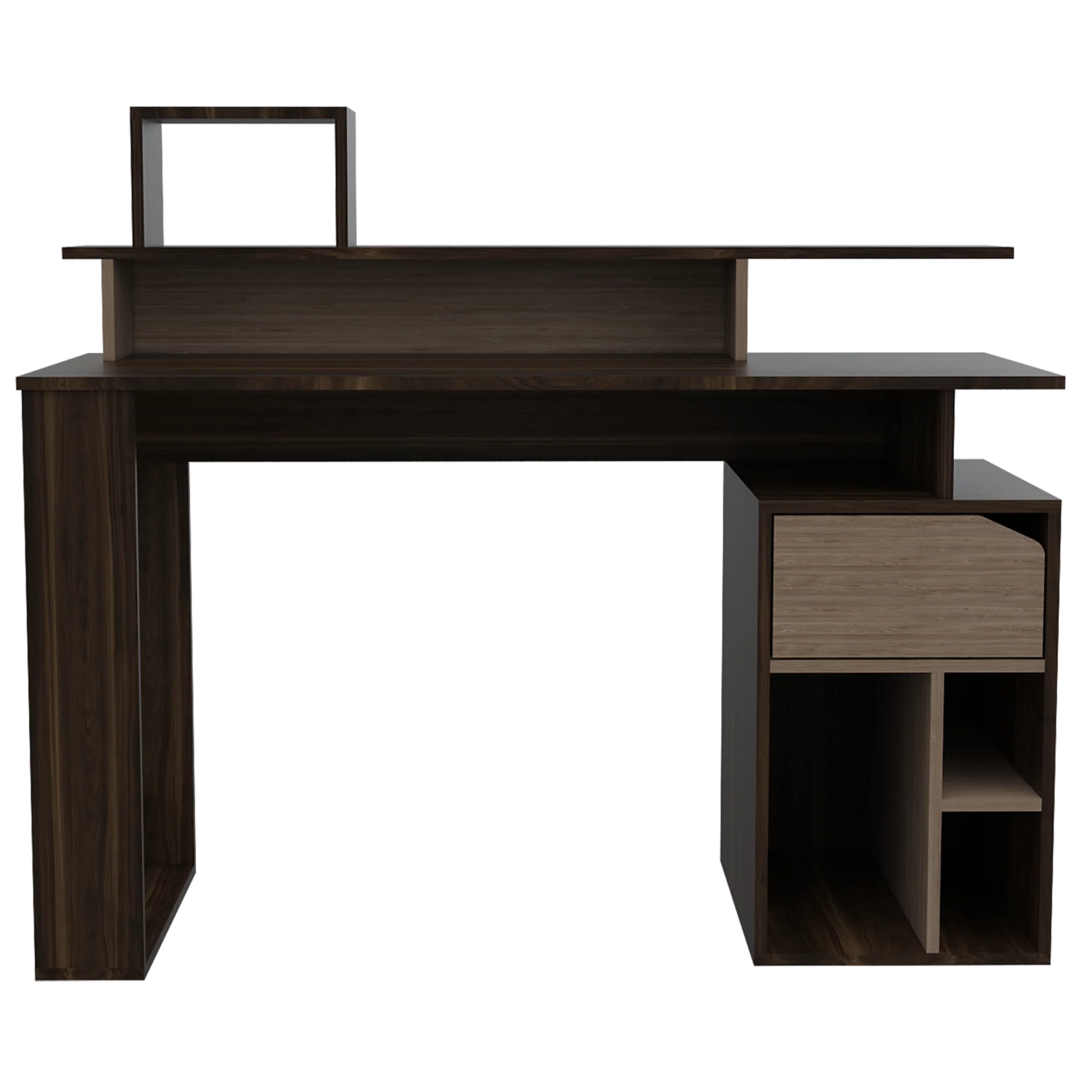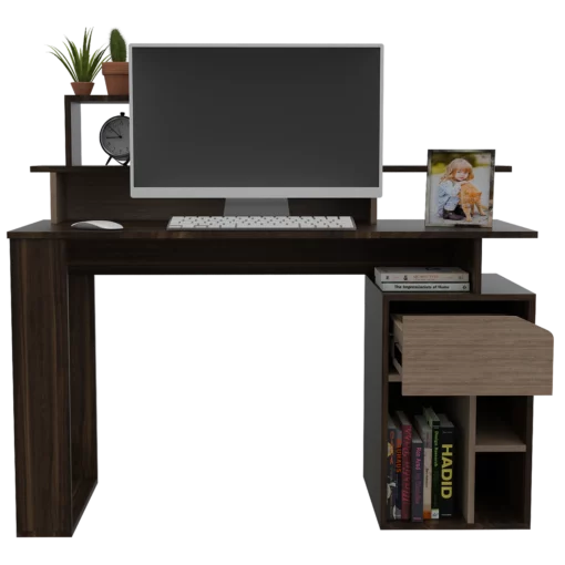 Escritorio, un cajón con riel extensión total, con amplia superficie de trabajo, compartimientos para objetos de estudio o decorativos y ubicar objetos.