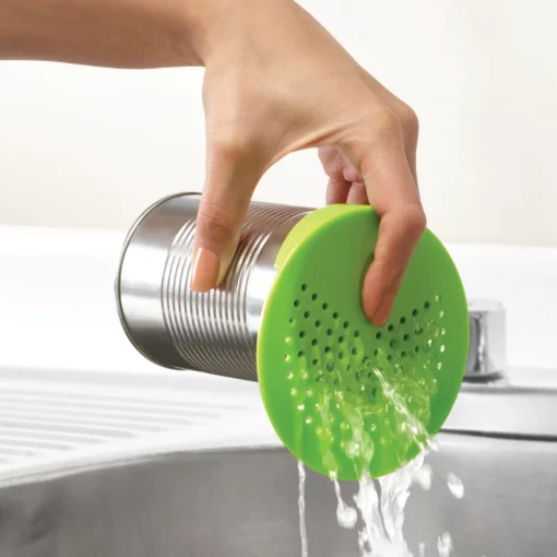Retira el líquido de tus alimentos enlatados sin desperdiciar su contenido con la ayuda de Escurre Latas. Funciona para todo tipo de latas.