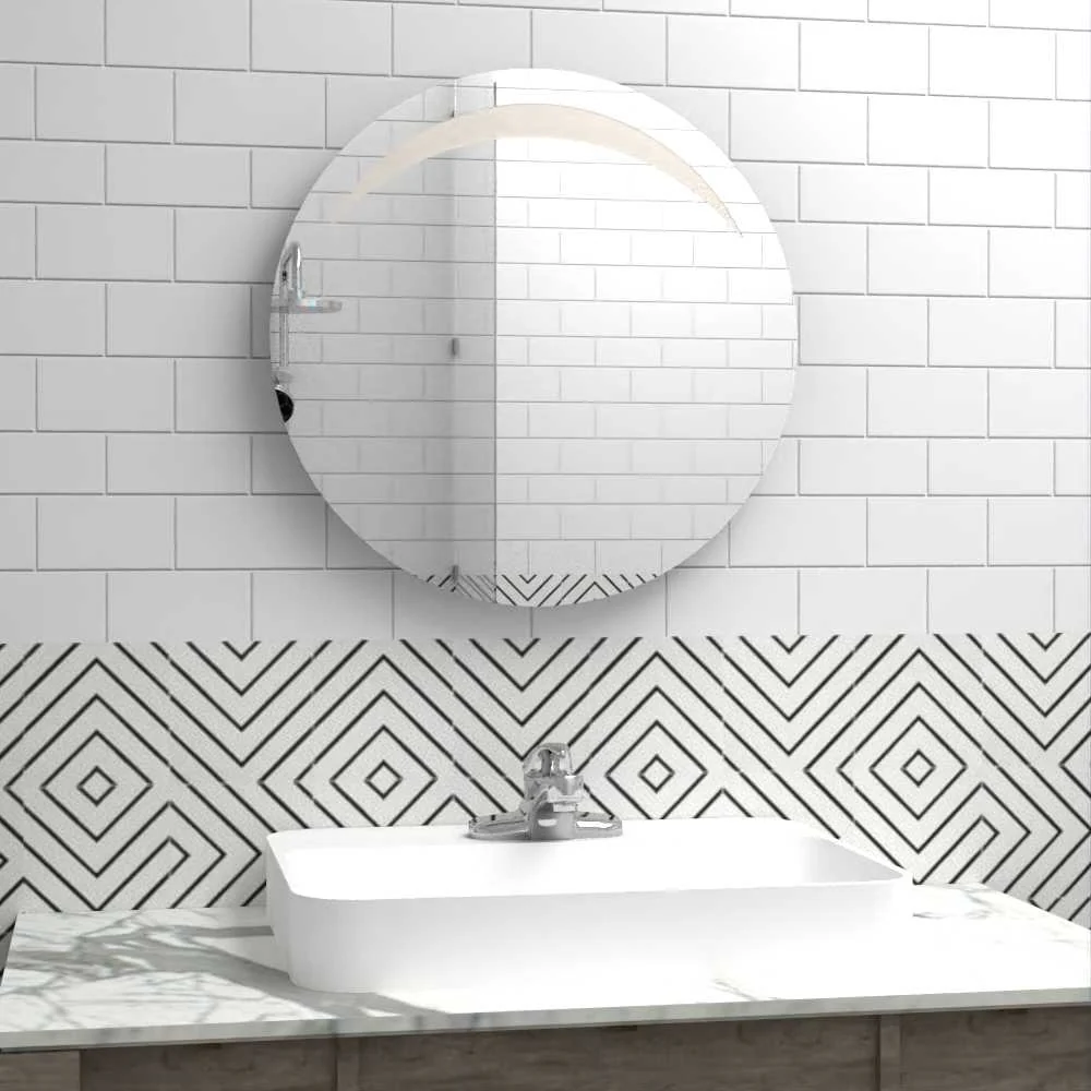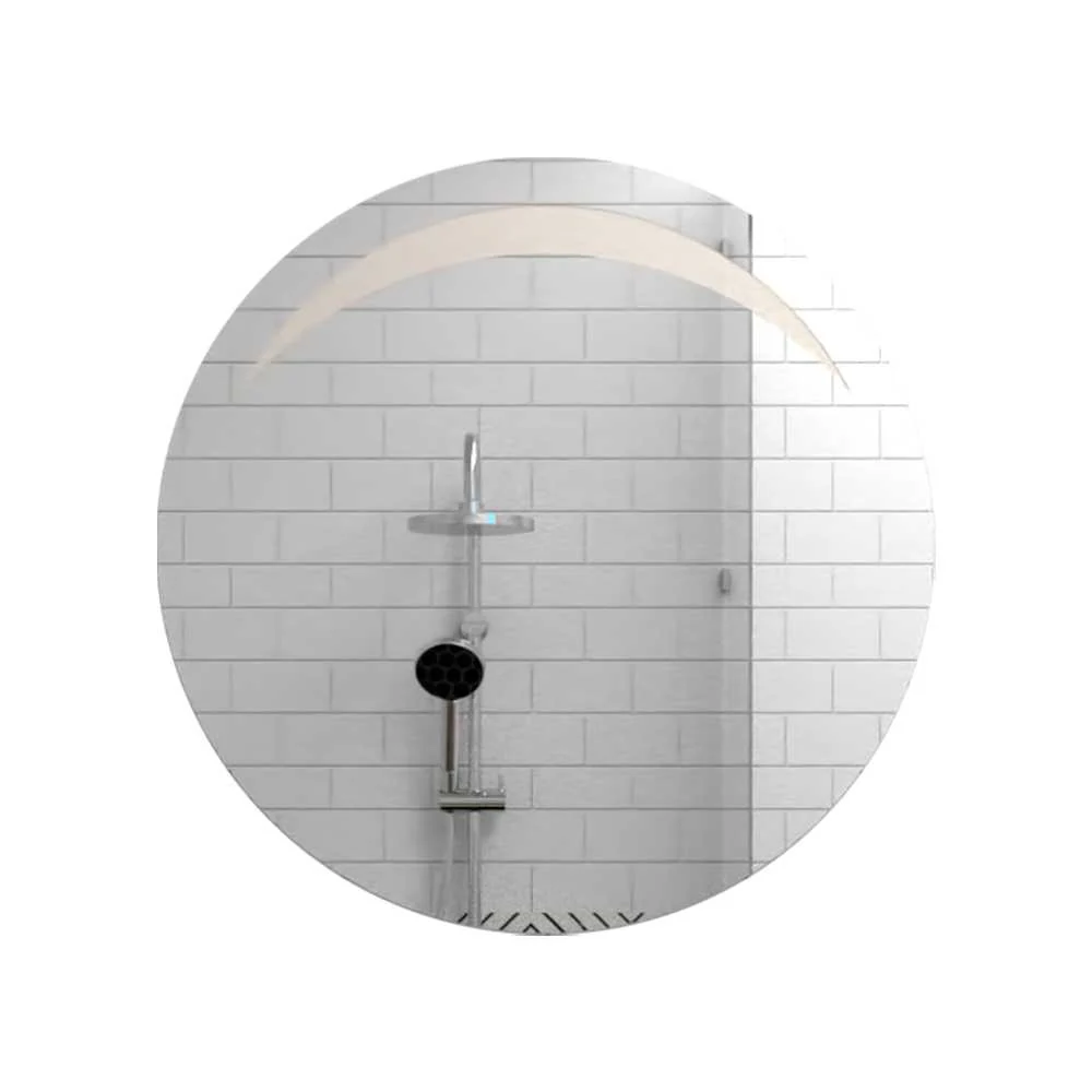 Espejo redondo con sandblasting y ensamble a pared con chaflan