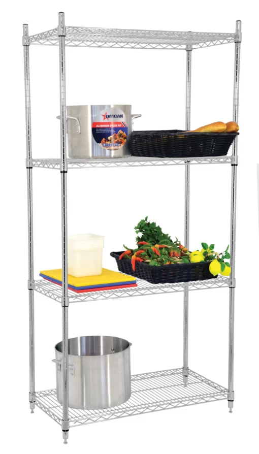 ESTANTE CROMADO MEDIDAS FRENTE 121.92 FONDO 45.72 ALTO 182.88 cm