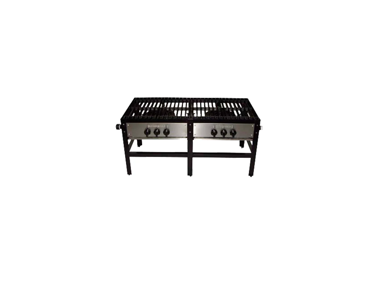 El fogón de dos plazas INTERNATIONAL esta estructurada y fabricada en ángulo de 2 y 1 1/2 acabado esmaltado, cuenta con ajuste de nivel para un correcto apoyo.Están construidos tres quemadores concéntricos para 110,000 BTU/hora, las parrillas dentadas de servicio pesado fabricadas en hierro fundido.Sus válvulas de gas independientes para cada aro del quemador regulables para gas natural, sus perillas de baquelita contienen alta resistencia al calor para evitar quemaduras, el frente de las válvulas está fabricado en acero inoxidable.Cuenta con charola de derrames independiente y con conexión de 1 1/4 NPT para gas LP. con presión de gas 11-13 Lb/pulg2.MEDIDASFrente 122cmFondo 60cmAlto 60cm