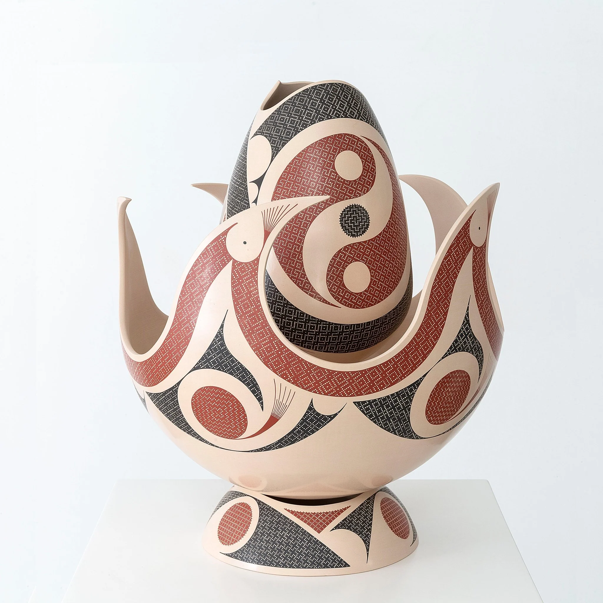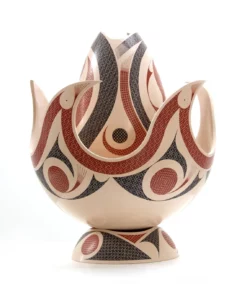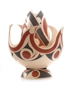 Esta pieza maestra es una representación del mismo oficio alfarero: el momento en que una pieza se ha terminado y se dispone para el fuego. Estas llamas están hechas con la misma tierra que se consolida en su interior, generando un conjunto maravilloso y estático, para deleite de sus observadores.