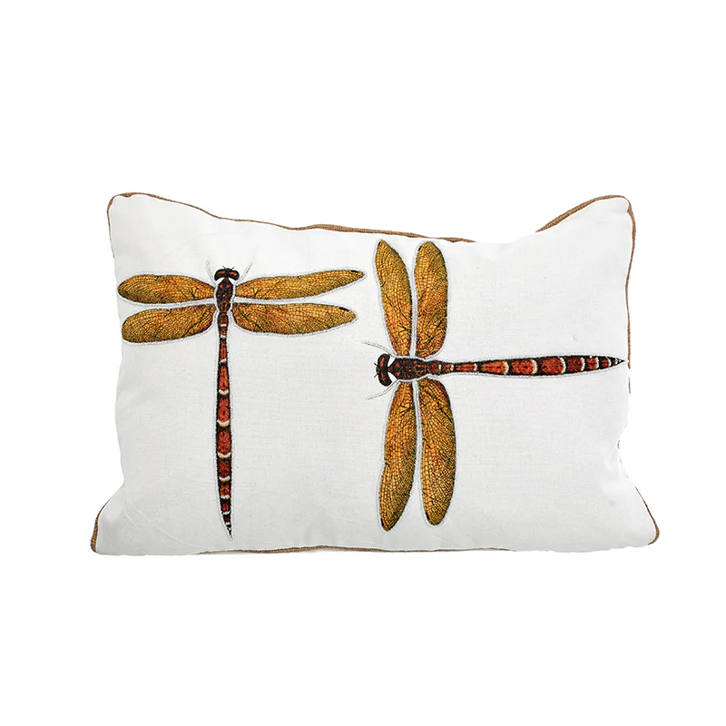 KC240135 Cojín Blanco Libélulas Bordado 35×50 cm.