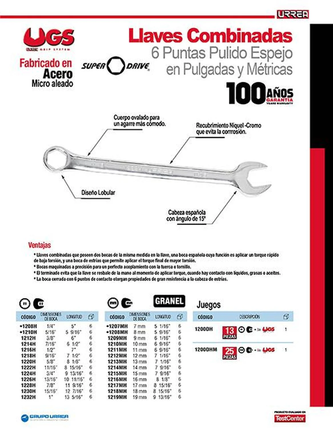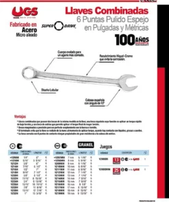 MARCA: Urrea DESCRIPCION DEL PRODUCTO: -Bocas maquinadas a precisión para un perfecto acoplamiento con la tuerca o tornillo-Bocas delgadas para un mejor acceso en áreas estrechas-Cuerpo ovalado para un agarre más cómodo-Boca de estrías con diseño super drive ESPECIFICACIONES TECNICAS: -Grueso Cabeza Española: 4.9 Mm-Grueso Cabeza Estría: 5.7 Mm-Longitud: 5 1/16″-Profundidad De Boca Española: 7.54 Mm-Sae O Métrico: Métrico CONTENIDO DEL PAQUETE: Llave combinada 6pts 7mm. GARANTIA: ALTO EN CM: 0.5 LARGO EN CM: 12.6 FONDO EN CM: 1.6 PESO EN KG: 0.02