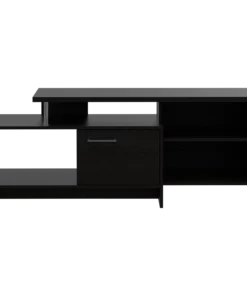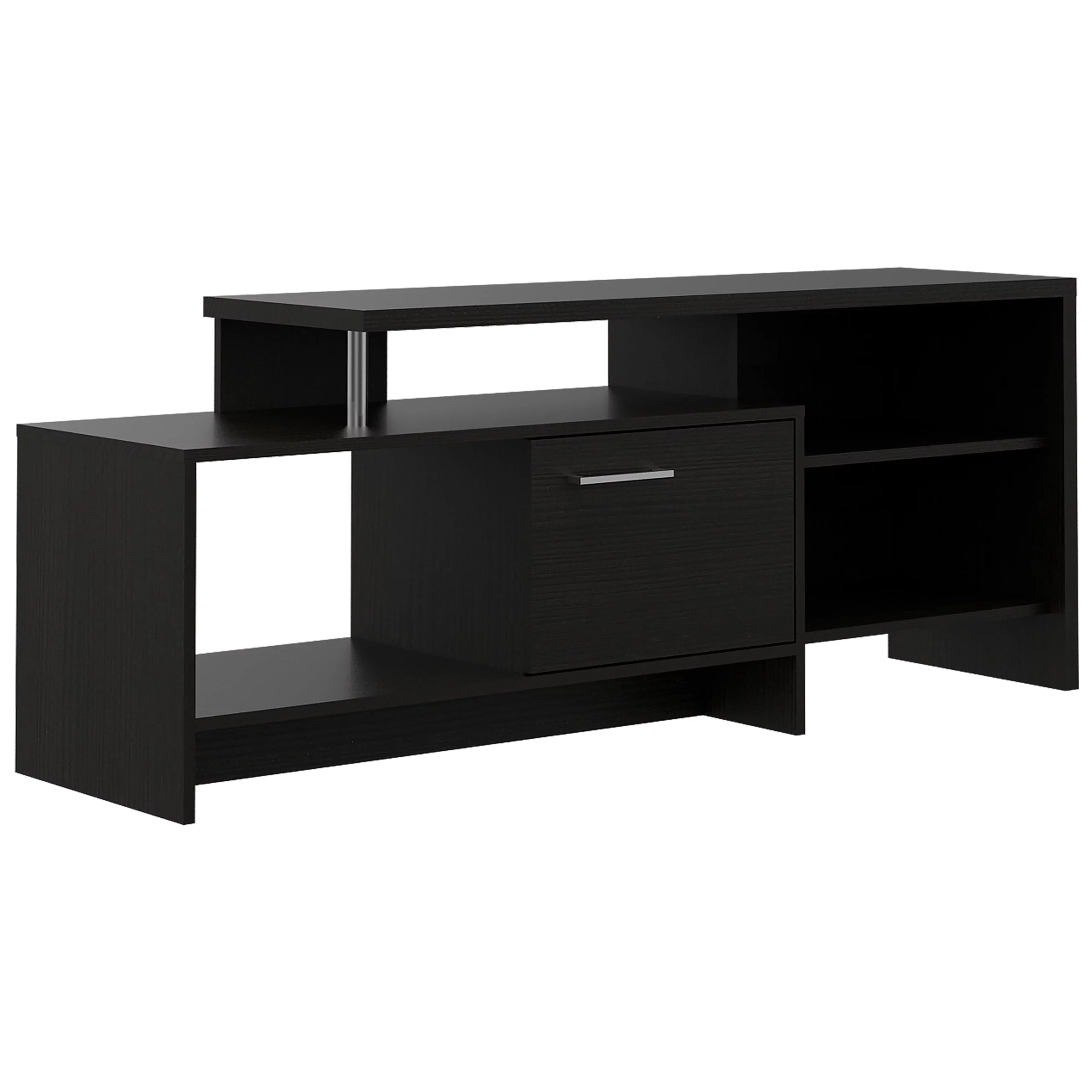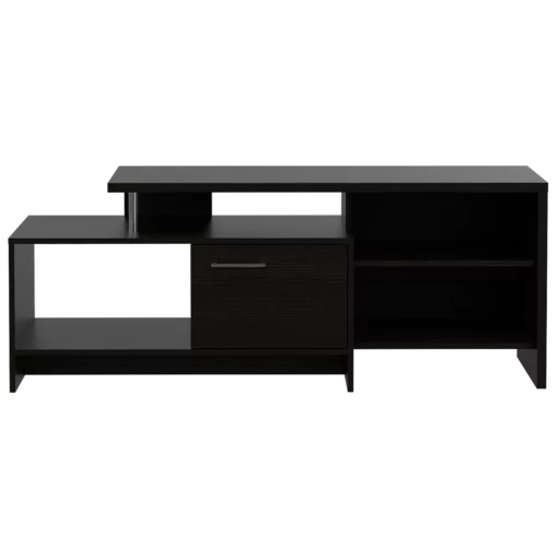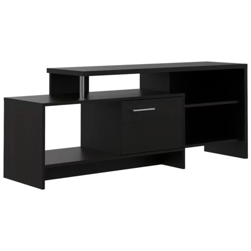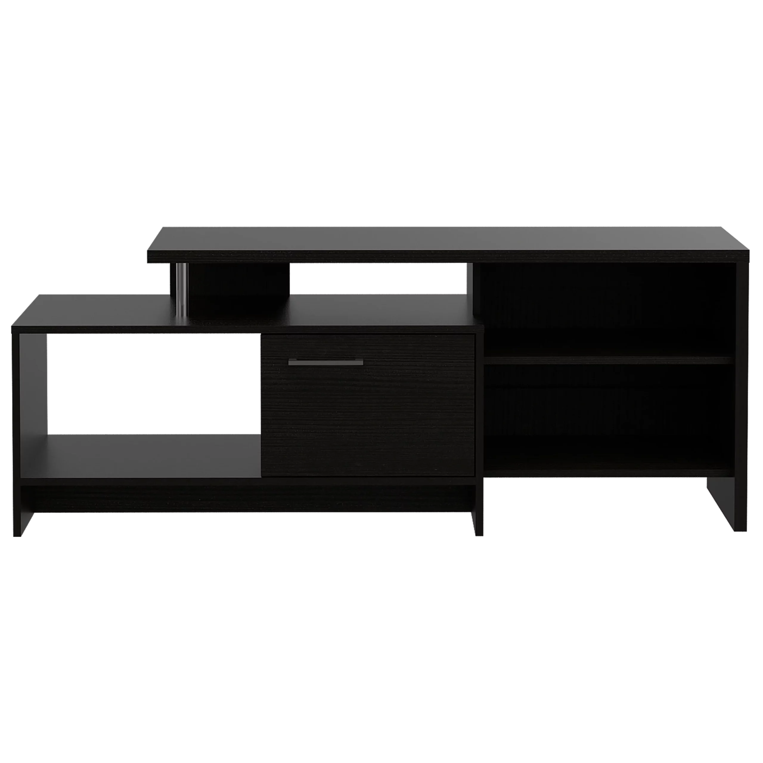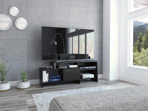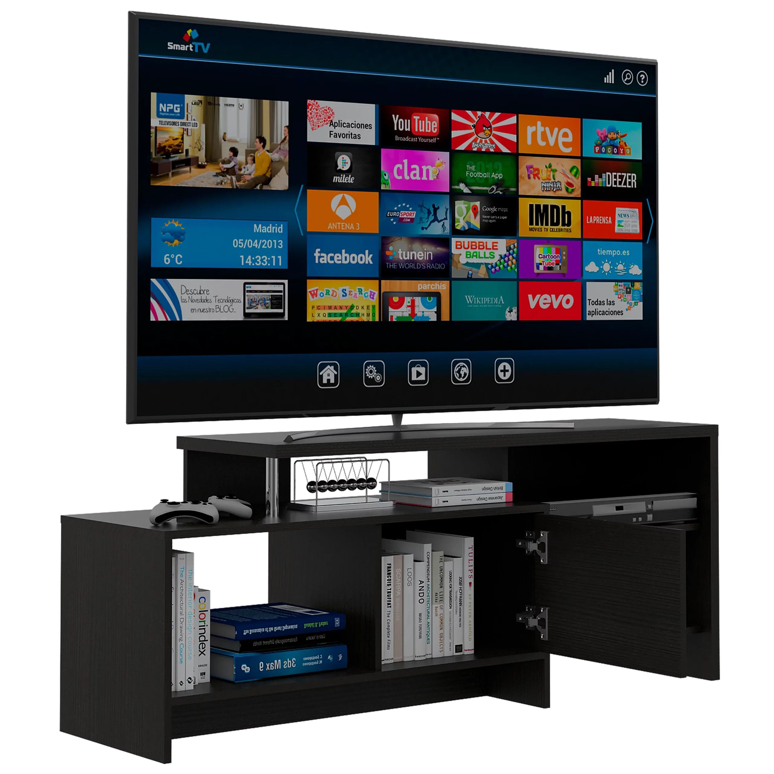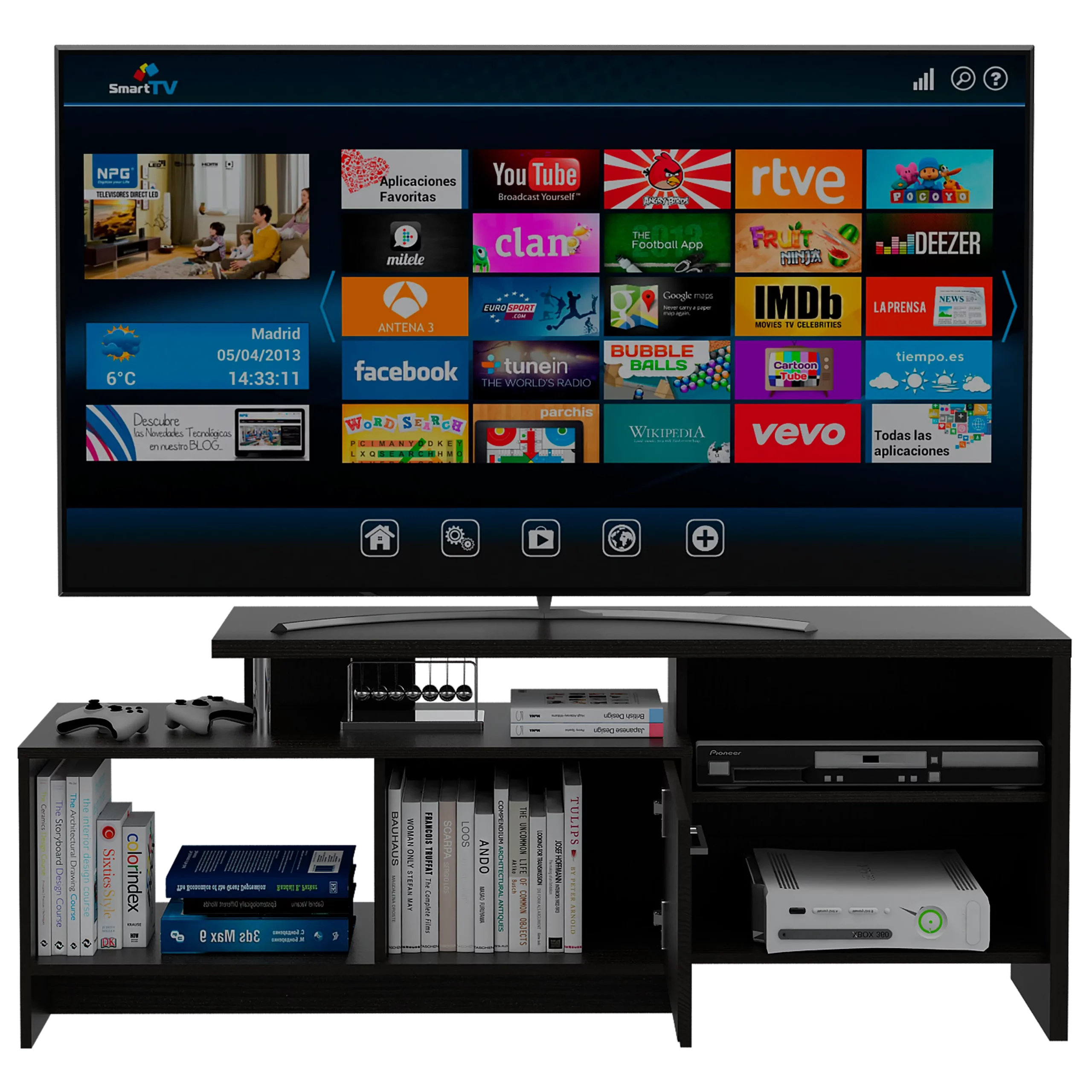 Mesa para TV, con espacio para TV de hasta 49″, 1 puerta batiente y espacio para ubicar equipos de audio y video.