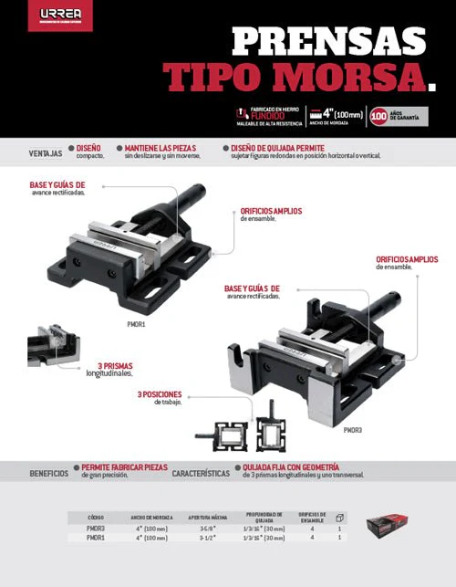 Prensa tipo morsa de 4″, 1 posición Urrea