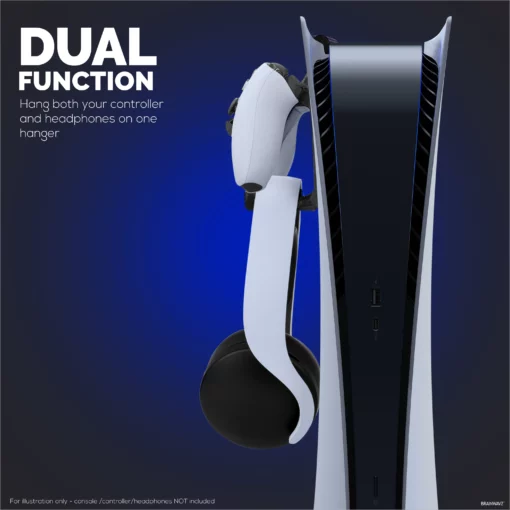 PS5 Game Controller & Headphone Hanger Console Mount for PlayStation PS5 DualSense Gamepad Hook-On Hanger Bracket
