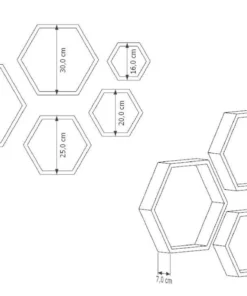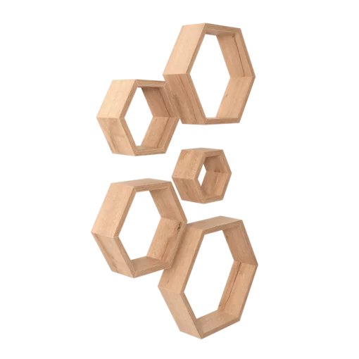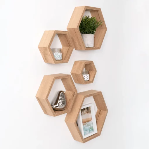 Set de Repisas hexagonales x 5 Unidades, ensamble a pared con cantonera.