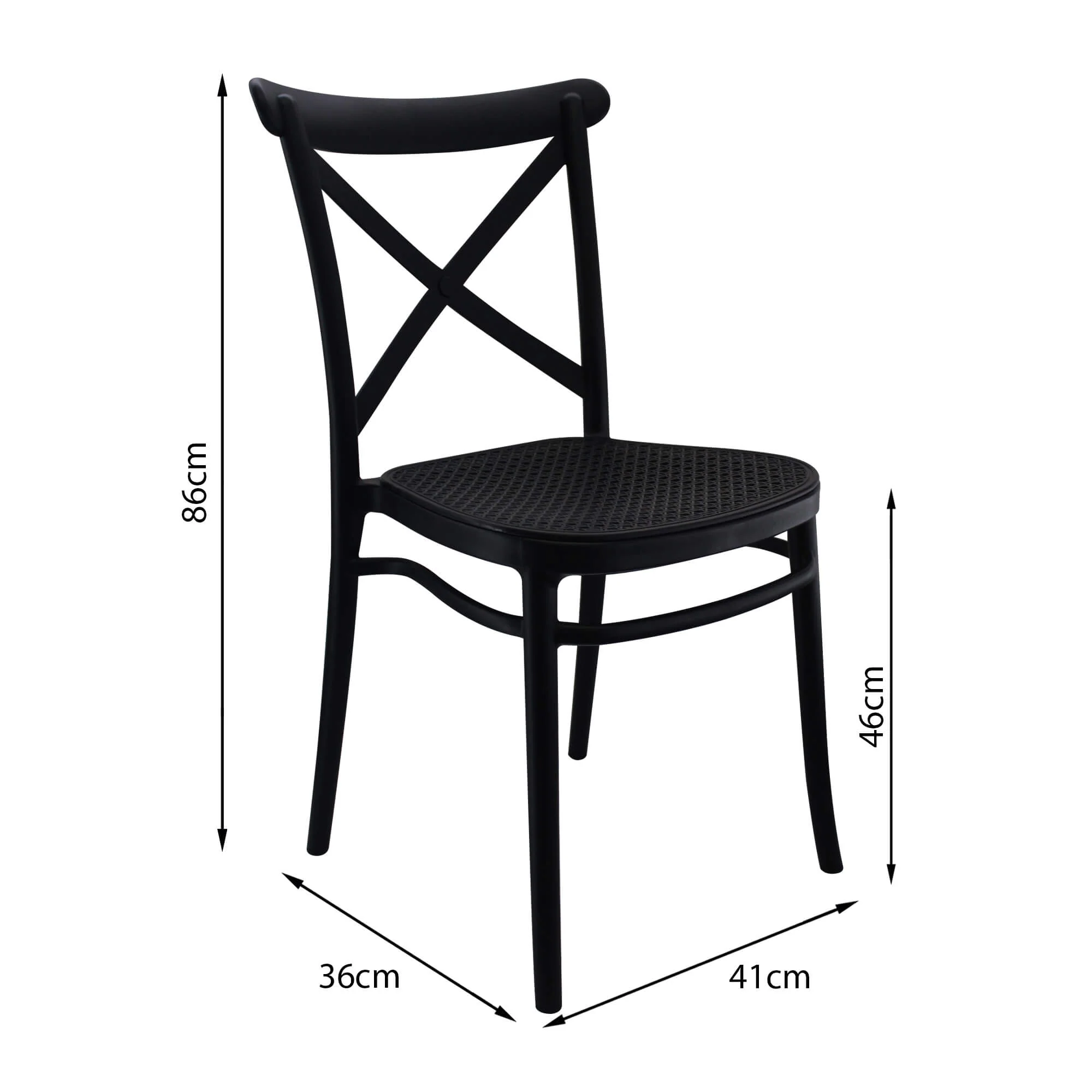 • Materiales de alta calidad: La estructura de polipropileno inyectado es resistente y duradera, mientras que el asiento es de ratán sintético.