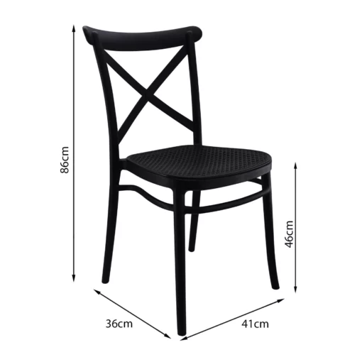 • Materiales de alta calidad: La estructura de polipropileno inyectado es resistente y duradera, mientras que el asiento es de ratán sintético.