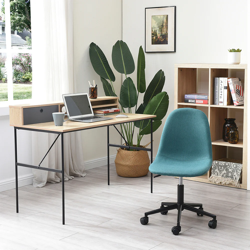 Silla de oficina giratoria con una altura del asiento ajustable con pistón de gas. Respaldo y asiento con una una tela lino. Asiento acolchado grueso para mayor comodidad. Fuerte base de 5 ruedas de poliuretano.
