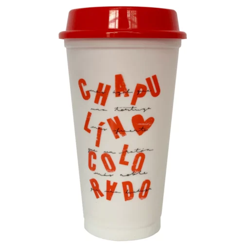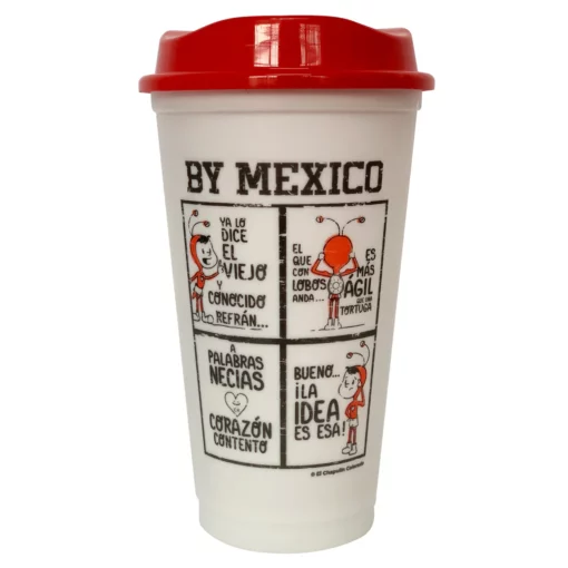- Vaso Cafetero reusable con diseño de uno de los personajes mas iconos del entretenimiento de la televisión mexicana “El Chapulín Colorado”