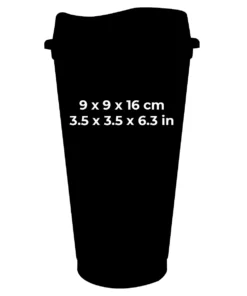 - 16.3 cm (con tapa) de altura, 8.9 cm diámetro superior y 5.7 cm